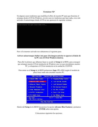 Este documento proporciona instrucciones para realizar una instalación limpia de Windows XP. Explica los pasos de respaldar archivos y drivers, formatear el disco duro, instalar Windows XP, y configurar la fecha, hora y otros detalles del sistema operativo. También recomienda instalar los drivers faltantes después de completar la instalación.