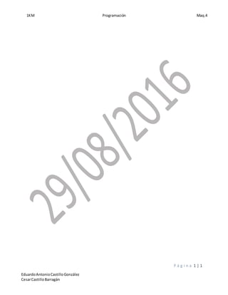 El documento trata sobre el programa de 1KM Programación Maq.4 de Eduardo Antonio Castillo González y Cesar Castillo Barragán. En menos de 3 oraciones.