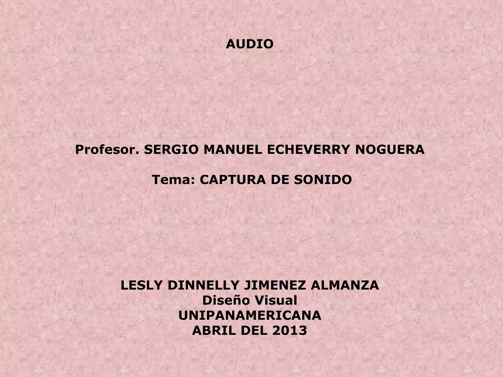 El documento habla sobre la captura de sonido. Explica que la captura de sonido es el proceso de registrar sonidos y convertirlos en archivos digitales que pueden ser reproducidos, editados o mezclados. También menciona que existen diferentes tipos de micrófonos para capturar diferentes frecuencias de sonido.