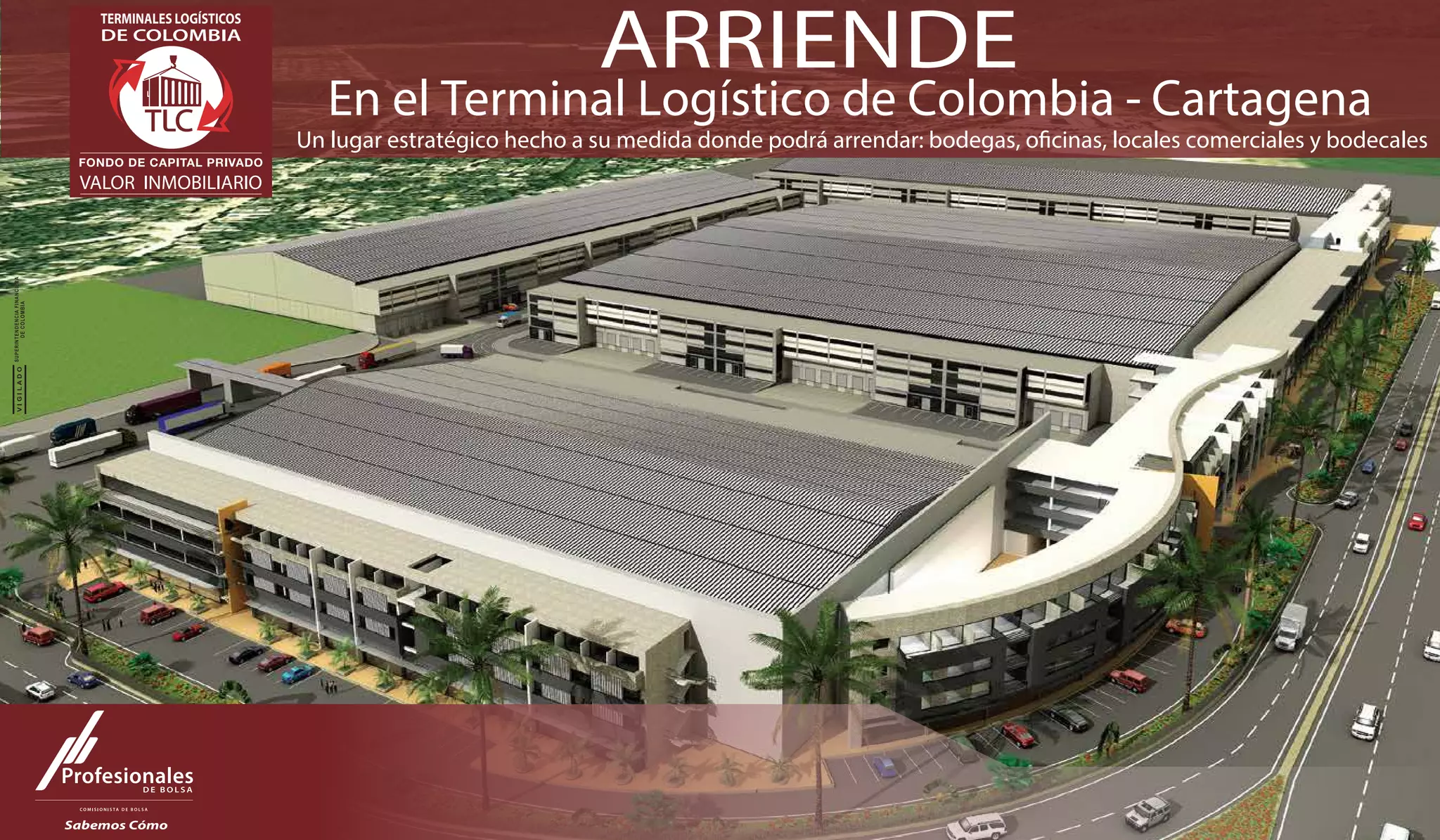El documento ofrece información sobre el arrendamiento de espacios en el Terminal Logístico de Colombia en Cartagena. El terminal cuenta con varios tipos de inmuebles como bodegas, oficinas, locales comerciales y hotel en un área total de 126,500 m2. Se proporcionan detalles sobre las características, ubicación y accesos del terminal, así como especificaciones técnicas de las bodegas disponibles para arrendar distribuidas en 4 manzanas.