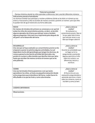 Este documento presenta una secuencia didáctica de dos semanas para enseñar a estudiantes de primaria sobre los números naturales, fraccionarios y decimales. La secuencia incluye actividades introductorias para evaluar los conocimientos previos de los estudiantes, desarrollo de dinámicas como el ahorcado para practicar la lectura y escritura de números, y una evaluación final para verificar el aprendizaje de los estudiantes.