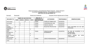 Este documento presenta un resumen del uso de recursos TIC en la Institución Educativa Técnica Agropecuaria la Granja. Indica que el video beam, televisor y DVD se usan semanalmente para charlas y conferencias, mientras que la cámara fotográfica y el aula de informática se usan diariamente para registrar proyectos y orientaciones académicas respectivamente. La emisora y el blog/página web no se usan actualmente debido a falta de señal e inexperiencia con esos recursos.
