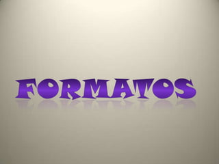 Este documento habla sobre diferentes formatos de archivos de imágenes digitales como TIFF, BMP, EPS, PSD, PDF, JPEG, GIF y PNG. Explica las características clave de cada formato como su capacidad de compresión, número de colores soportados, uso común y compatibilidad con otros programas. El documento fue escrito por Tania Mabel López josa para su clase de computación sobre formatos de archivos de imágenes digitales.