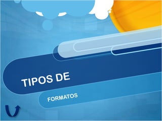 Este documento presenta información sobre diferentes formatos de archivo como .doc, .pdf, .txt, .csv y .rtf. Explica brevemente el propósito y características de cada formato. El formato .doc se usa originalmente para texto plano pero luego fue adoptado por Microsoft Word, mientras que .pdf permite compartir documentos de forma multiplataforma. Archivos .txt sólo contienen texto sin formato, .csv almacena datos separados por comas y .rtf permite intercambiar documentos con formato entre plataformas.