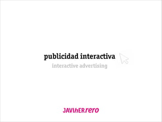 El documento aborda la publicidad interactiva, destacando la importancia de distintos formatos publicitarios digitales y su impacto en la percepción de marca. Se mencionan estadísticas sobre la efectividad de los banners y las tasas de clics, así como ejemplos de formatos gráficos y recomendaciones de diseño. Además, se describe la evolución de la publicidad display y los modelos de coste asociados a ella.