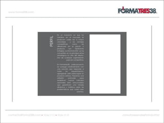 La consultoría ofrece servicios de diseño industrial que incluyen análisis, planeación estratégica, desarrollo creativo, ingeniería y procesos de producción. También se especializa en el desarrollo de espacios comerciales para ferias y exposiciones temporales, permanentes o itinerantes, como stands para varias empresas.