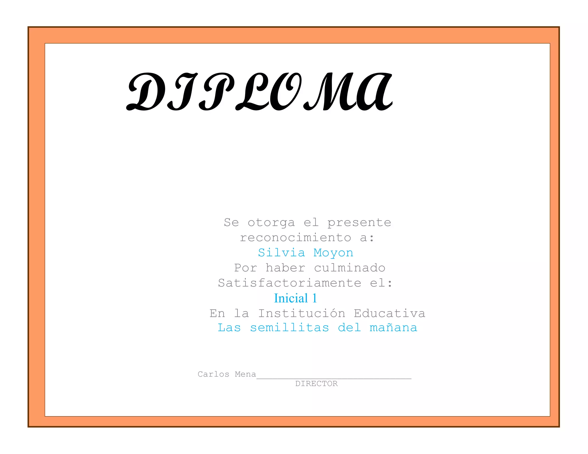 Este documento contiene cuatro diplomas otorgados a estudiantes por haber completado con éxito los niveles iniciales 1 y 2 en diferentes instituciones educativas. Cada diploma reconoce y celebra el logro académico de Silvia Moyon, Dominic Camas, Mateus Yepez y Viviana Martinez.