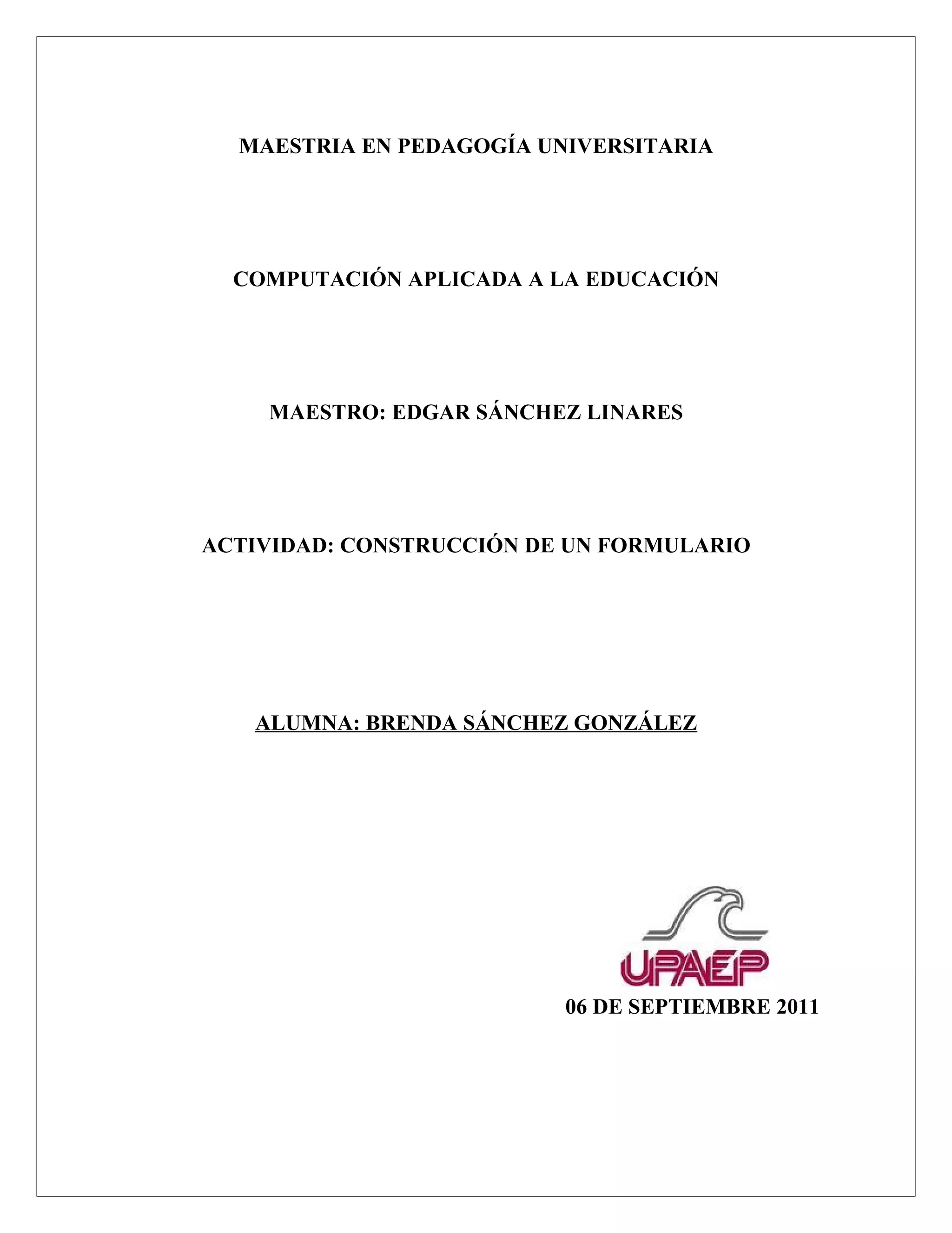 Este documento presenta un formulario para evaluar el conocimiento de una alumna sobre el tema de la integración curricular de las tecnologías de la información y la comunicación (TIC) en base a dos artículos. El formulario contiene preguntas abiertas, de selección múltiple y de emparejamiento sobre conceptos como la diferencia entre el uso y la integración de la tecnología, definiciones de integración curricular, autores y niveles de integragración.