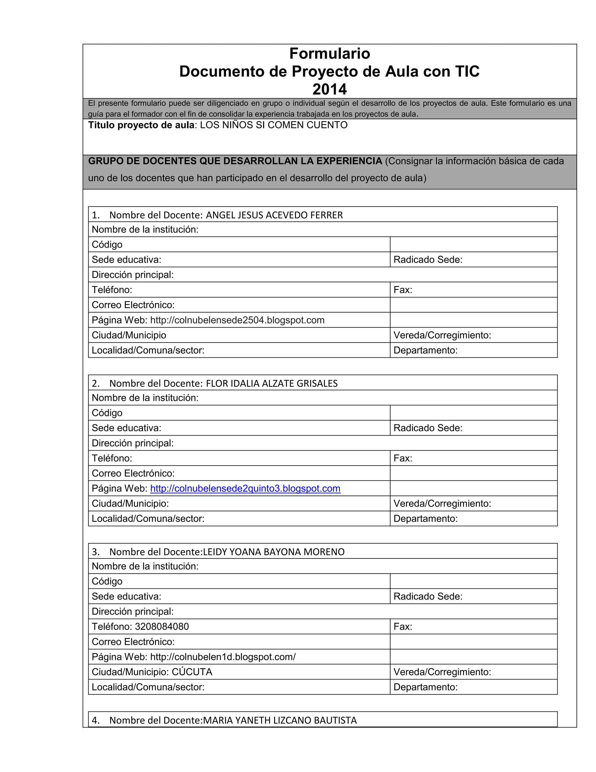Este documento presenta un proyecto de aula realizado por varios docentes utilizando las TIC para motivar la lectura de cuentos infantiles en estudiantes. El proyecto involucró actividades como la proyección de videos de cuentos, juegos educativos en computador, y la creación de cuentos usando aplicaciones. El objetivo era mejorar la comprensión lectora y el interés por la lectura de los estudiantes.