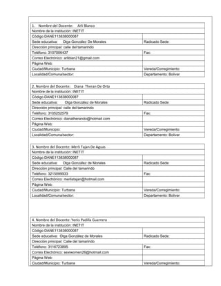 Este documento presenta un formulario para documentar un proyecto de aula con TIC en una institución educativa en Turbana, Bolívar. El proyecto, liderado por cuatro docentes, busca mejorar el hábito lector y la comprensión lectora de los estudiantes de preescolar a través del uso de las TIC. El formulario incluye la descripción del proyecto, objetivos, actividades planeadas, y resultados preliminares positivos en el proceso de aprendizaje de los estudiantes.