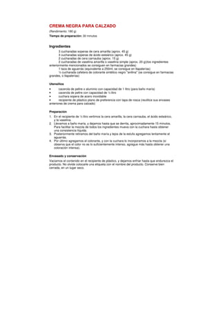 Este documento proporciona instrucciones para hacer un limpiador, desinfectante y aromatizador de pino a partir de ingredientes como lauril sulfato de sodio, formol, colorante vegetal verde y esencia de pino. El procedimiento incluye mezclar los ingredientes en un cubeta de plástico y luego envasar el producto terminado en un envase de plástico para su almacenamiento y uso. Se recomienda etiquetar el envase con información como el nombre del producto y la fecha de elaboración.