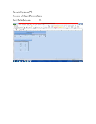 Las dos oraciones resumen el documento: El documento contiene los nombres de dos estudiantes, John Edward Perdomo Aponte y Daniel Felipe Quiñones, y su número de identificación 901.