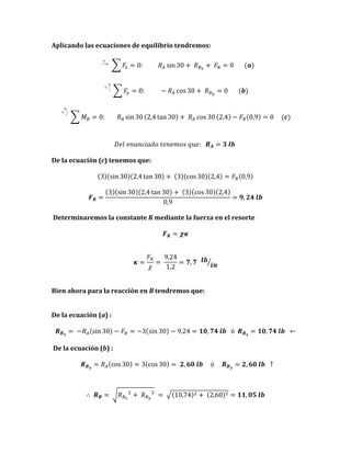 (1) Se extrae el diagrama de cuerpo libre de un dibujo que muestra un resorte y apoyos fijos y móviles; (2) Del diagrama se concluye que hay reacciones en los apoyos y una fuerza del resorte; (3) Aplicando ecuaciones de equilibrio se determinan las reacciones y la constante del resorte.