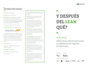 El foro se llevará a cabo el 18 de marzo, con un horario de 9:00h a 15:00h, y ofrece una matrícula de 40 euros para empresas socias del club de marketing. Se abordarán temas sobre lean, transformación de procesos y la integración de nuevas tecnologías en la industria, con ponentes destacados en el área. El evento está dirigido a gerentes y responsables de operaciones de diversos sectores, buscando mejorar la eficiencia y competitividad empresarial.