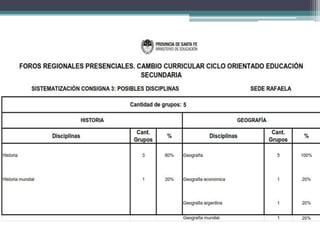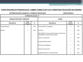 El documento habla sobre la revisión curricular de la cuarta etapa de la educación primaria en Argentina. Se propone actualizar los contenidos y objetivos de aprendizaje para adecuarlos a las necesidades actuales, teniendo en cuenta los avances tecnológicos y científicos recientes. El enfoque será desarrollar las competencias del siglo XXI en los estudiantes como la resolución de problemas, el pensamiento crítico y la colaboración.