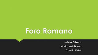 El documento describe una maqueta abstracta del Foro Romano realizada por un grupo de estudiantes. Utilizaron cartón, cartulina de colores y silicona para construir la maqueta basándose en una imagen. Representaron los diferentes espacios y estructuras del Foro Romano como templos, basílicas, curia y senado mediante planos de colores.