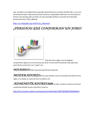 Un foro es una aplicación web que permite a los usuarios discutir y compartir opiniones sobre diferentes temas. Los usuarios pueden iniciar nuevas discusiones o responder a discusiones existentes. Los foros están organizados por temas y son moderados por administradores y moderadores para asegurar que las discusiones sigan las reglas del foro.