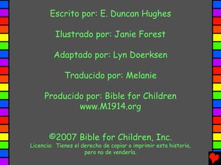 Este documento presenta un resumen de la historia bíblica de los 40 años que los israelitas pasaron en el desierto luego de ser liberados de Egipto. Narra cómo Dios cuidó de su pueblo al darles comida como el maná y protegerlos de sus enemigos, a pesar de las quejas del pueblo. También describe cómo Dios le dio a Moisés los Diez Mandamientos en el Monte Sinaí y cómo el pueblo adoró un becerro de oro en su ausencia. Termina contando cómo los israelitas no cre