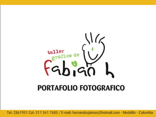 Este documento contiene la información de contacto de un fotógrafo en Medellín, Colombia, incluyendo su teléfono fijo, celular y correo electrónico. La información se repite varias veces a lo largo del texto, lo que sugiere que es un portafolio fotográfico. No se proporciona información adicional sobre el trabajo o el estilo del fotógrafo.