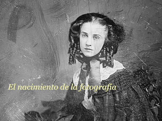 La fotografía nació en el siglo XIX como una técnica para capturar imágenes que permitió a la burguesía y aficionados documentar sus vidas. Se desarrollaron dos roles fotográficos: el fotógrafo artista y el fotógrafo de oficio para satisfacer la demanda creciente, mientras que la cámara Kodak de 1888 popularizó la fotografía entre los aficionados.