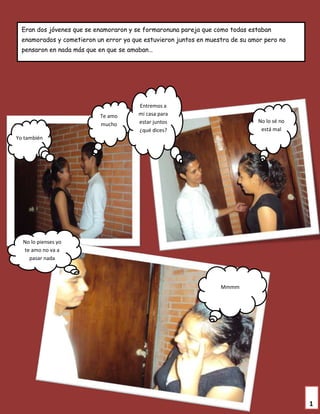 El documento narra la historia de un joven que se convirtió en un mal hijo. Su madre lo tuvo cuando era joven y soltera después de quedar embarazada por un hombre que no quería responsabilizarse. Ella lo crió sola con mucho amor y esfuerzo. Sin embargo, el hijo se volvió vicioso y no le importaba preocupar ni despreciar los sentimientos y esfuerzos de su madre. Lamentablemente, el trato del hijo hacia su madre terminó en una tragedia.