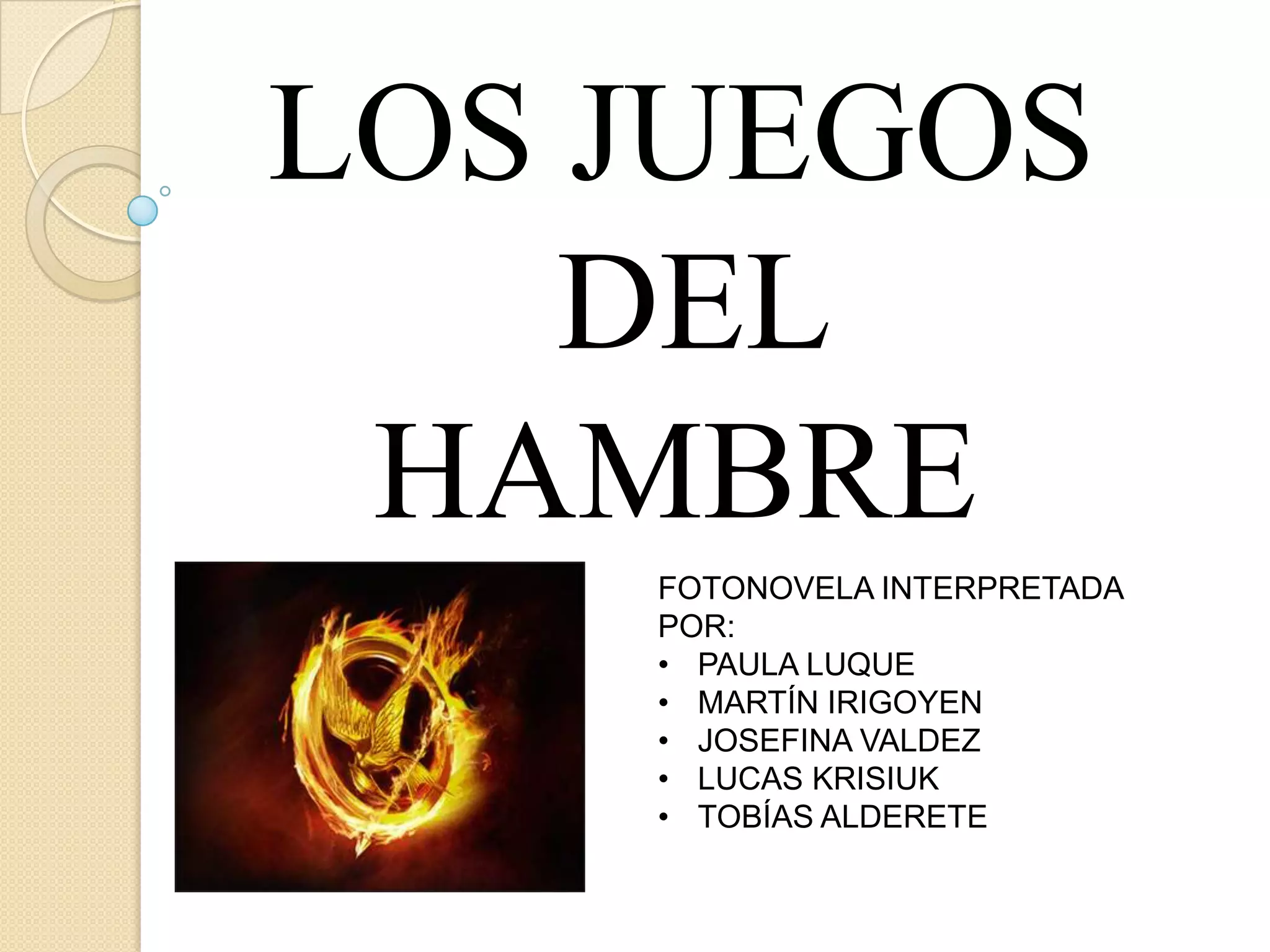 Katniss se ofrece voluntaria para tomar el lugar de su hermana Primrose como tributo femenina en los Juegos del Hambre. Ella y su compañero tributo Peeta entrenan para competir contra otros tributos en una arena mortal. Durante los juegos, Katniss ayuda a Peeta cuando este resulta herido y ambos luchan para sobrevivir hasta el final. Finalmente, los organizadores deciden que ambos pueden ganar los juegos en lugar de tener un único ganador.