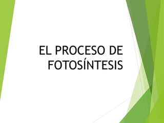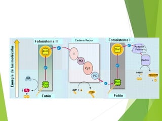 El documento describe el proceso de fotosíntesis. La fotosíntesis ocurre en los cloroplastos de las plantas y convierte la energía solar en energía química. Consta de dos fases: la fase lumínica, donde la luz es absorbida por los pigmentos como la clorofila y se produce ATP y NADPH; y la fase no lumínica, donde el CO2 se convierte en carbohidratos usando el ATP y NADPH producidos previamente.