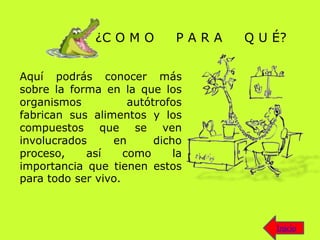 The document outlines activities for a biology workshop on photosynthesis, including reviewing key concepts, two activities to test understanding, and recommendations for further learning. Participants learn about the processes involved in photosynthesis like the light-dependent and light-independent reactions, and the importance of photosynthesis for all living things.