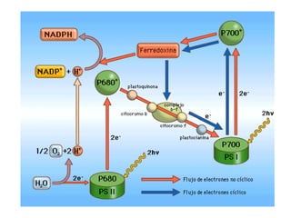 La fotosíntesis consta de dos fases: la fase luminosa, donde se captura la energía lumínica y se generan ATP y NADPH; y la fase oscura, donde se fija el CO2 para producir glucosa utilizando la energía de los productos de la fase luminosa. La fotosíntesis es afectada por factores como la luz, temperatura, CO2 y humedad.