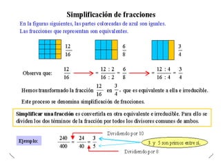 Este documento habla sobre fracciones y recuerda algunos conceptos básicos sobre ellas. Menciona que se pueden comparar fracciones realizando un producto cruzado entre ellas.