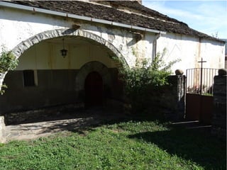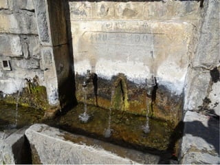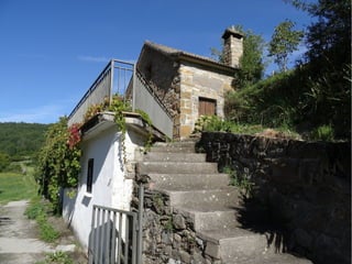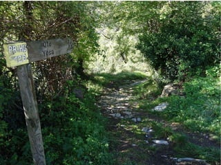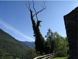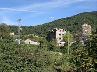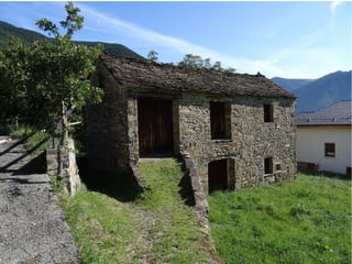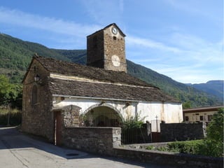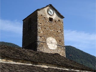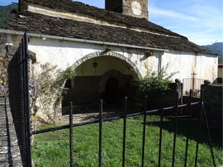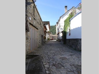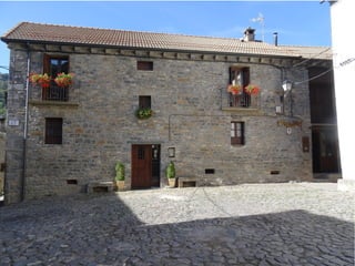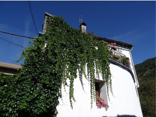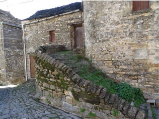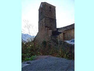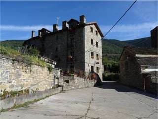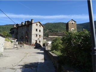 Este documento habla sobre el pueblo de Fragen en Huesca, España. Describe que el estacionamiento es obligatorio excepto para los servicios, debido a que las calles son muy estrechas y dan preferencia a los residentes. También menciona que a pesar de las calles estrechas no hay atascos, la línea eléctrica y transformador que alimentan al pueblo, senderos cercanos, y un pastor eléctrico con batería de 9 voltios y salida de 9,000 voltios.