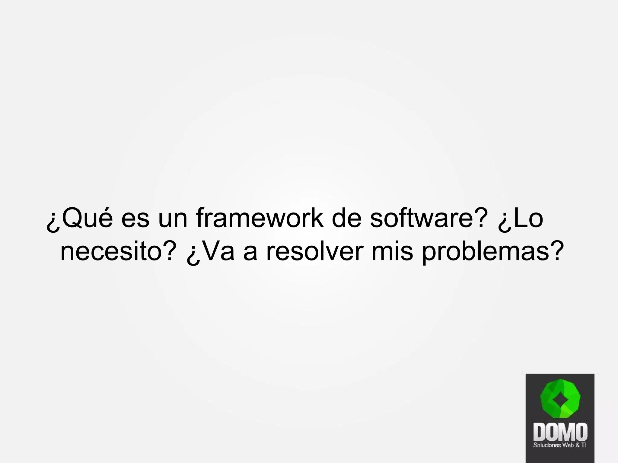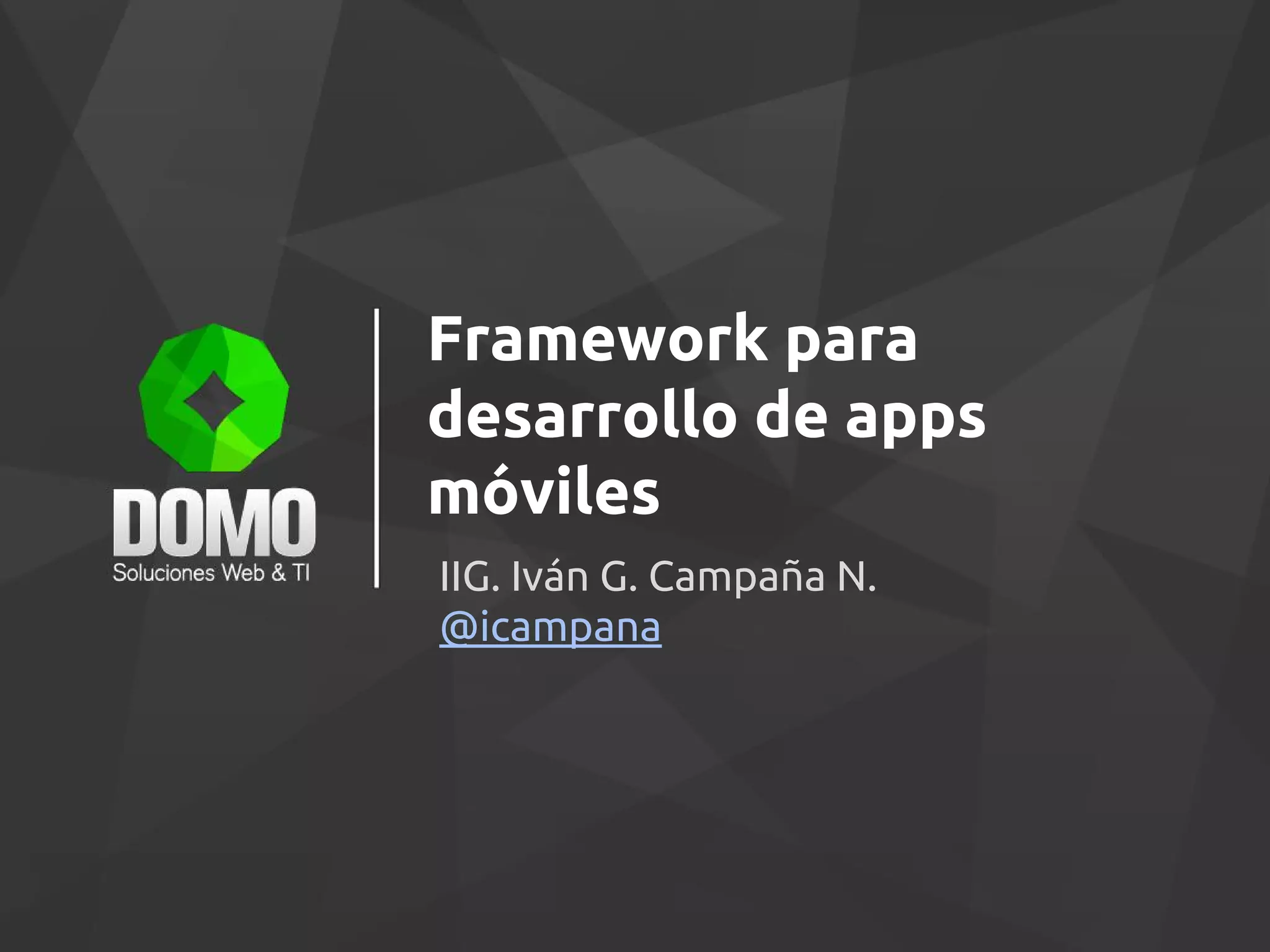 Este documento describe los conceptos clave de los frameworks para el desarrollo de aplicaciones móviles. Explica que un framework proporciona una estructura conceptual y herramientas para agilizar el desarrollo de software siguiendo las mejores prácticas. También discute los beneficios de usar frameworks, como evitar reinventar la rueda y estandarizar el proceso de desarrollo. Finalmente, cubre temas como los patrones de diseño, el desarrollo ágil, y las herramientas que se pueden usar para crear aplicaciones m