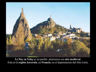 Le Puy-en-Velay es un pintoresco pueblo medieval en Francia, famoso por su arquitectura y monumentos históricos, incluyendo la catedral de Notre Dame de France y la capilla de St. Michel, ambos declarados patrimonio de la humanidad por la UNESCO. La catedral, de estilo románico-bizantino, y la capilla, que combina estilos carolingio y románico primitivo, son ejemplos destacados de su rica herencia cultural. Además, el Camino de Le Puy, una de las rutas más antiguas hacia Santiago de Compostela, también está catalogado como patrimonio de la humanidad.