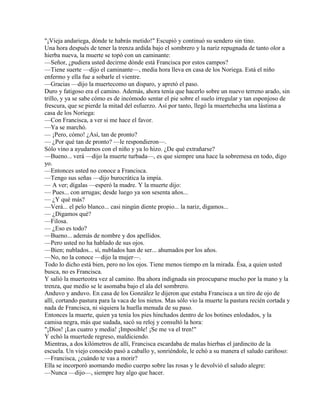 La muerte llega a la casa de Francisca para llevarla, pero esta siempre está ocupada trabajando en diferentes lugares. La muerte recorre varios campos y casas preguntando por Francisca, pero nunca puede encontrarla. Finalmente, la muerte se da por vencida y se va maldiciendo, mientras Francisca sigue trabajando activamente en el jardín de una escuela.