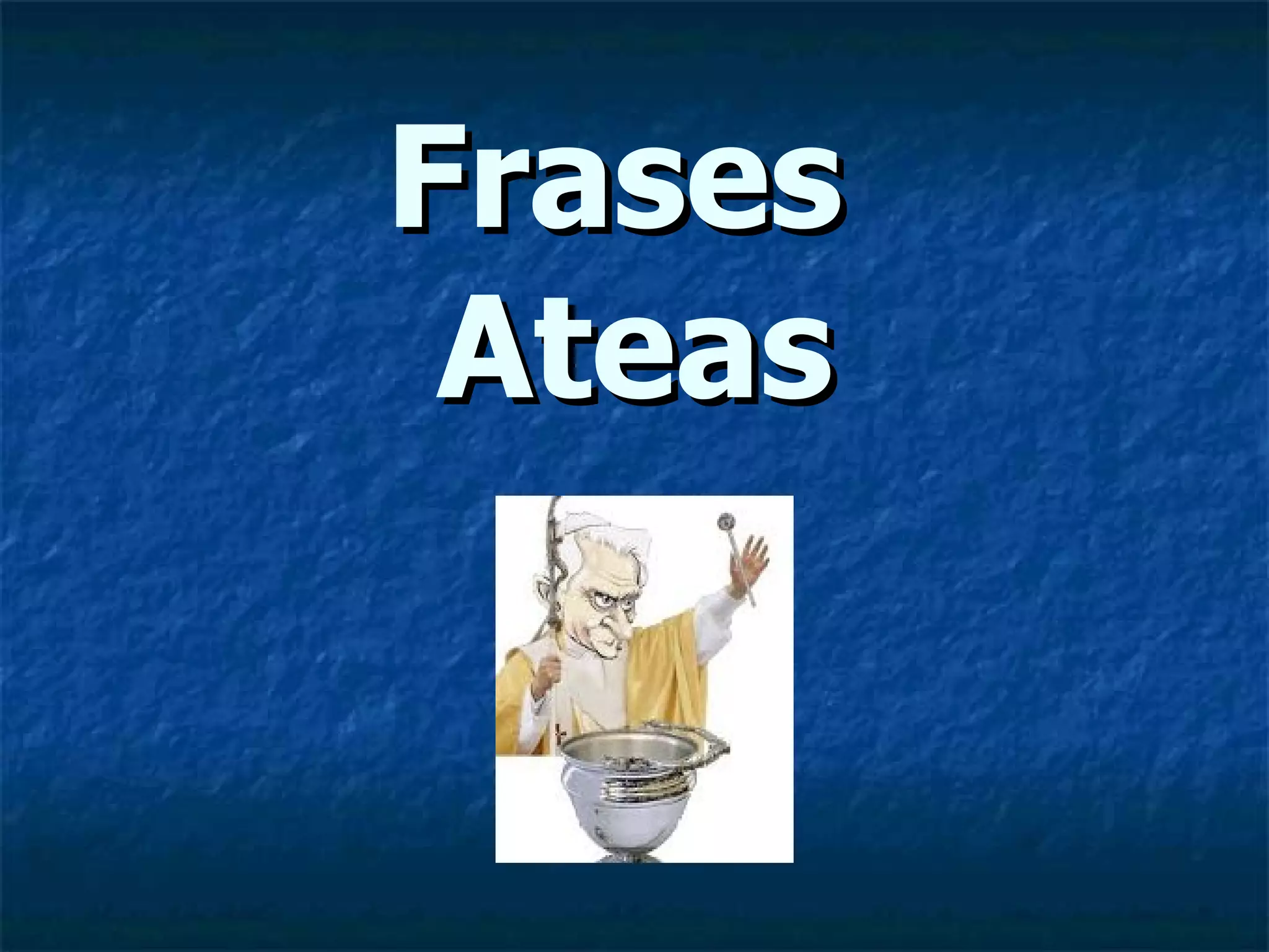 El documento presenta varias citas de personas ateas que cuestionan la existencia de Dios. Robert Pirsig sugiere que la religión es un delirio colectivo. Steve Allen dice que el ateísmo se debe a la honestidad intelectual, no a la maldad. Mijaíl Bakunin afirma que la idea de Dios implica la esclavitud del hombre. Richard Dawkins pregunta por qué un creador permitiría el sufrimiento animal. Edward Abbey critica a los misioneros que cristianizan a los pueblos indígenas. Gene Roddenberry c