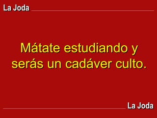El documento contiene una colección de frases graciosas y bromas cortas sobre temas como el matrimonio, el estudio, el trabajo y la política. Cada frase termina con "La Joda La Joda" y están dirigidas a Carolina, quien disfruta de este tipo de contenido humorístico.