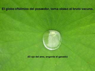 El globo oftálmicodel poseedor, torna obeso el bruto vacuno. (El ojo del amo, engorda el ganado)