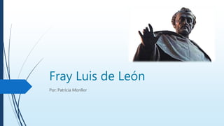Fray Luis de León fue un importante poeta del Renacimiento español nacido en 1527 en Belmonte, Cuenca. Estudió en la Universidad de Salamanca donde se graduó en teología en 1561 y obtuvo la cátedra de Sagradas Escrituras. Fue ingresado injustamente en la cárcel durante 5 años y murió en 1591. Algunos de sus poemas más destacados incluyen "Vida retirada" donde expresa su deseo de soledad y tranquilidad espiritual.
