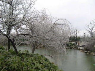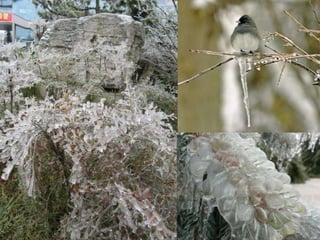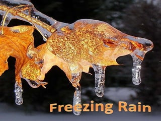 Freezing rain occurs when rain falls while surface temperatures are below freezing, causing the raindrops to freeze on contact with the ground or other surfaces. Unlike snow, sleet or hail, freezing rain is made entirely of liquid water droplets that freeze as they fall or after hitting surfaces.