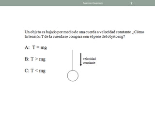 El documento repasa las leyes de Newton y la fricción. Explica el coeficiente de rozamiento estático y cinético, y cómo la fuerza de fricción depende de la fuerza normal y el coeficiente. También analiza casos donde un bloque está en reposo, a punto de deslizarse o deslizándose, y describe cómo cambia la fuerza de fricción.