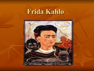 Frida Kahlo fue una pintora mexicana que utilizaba un estilo inspirado en el arte popular de México. A los 16 años sufrió un grave accidente de tráfico que la dejó confinada a cama durante meses, durante los cuales comenzó a pintar. Sus cuadros representan fundamentalmente su experiencia personal y el dolor físico y emocional, incluyendo su columna vertebral dañada y su incapacidad para tener hijos. Su casa en Coyoacán ahora alberga el Museo Frida Kahlo.