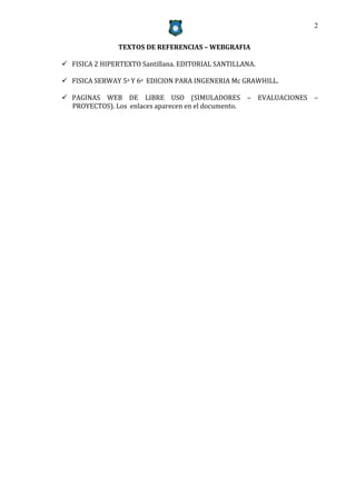 Este documento presenta la planeación y ejecución del curso de Física para el grado 11 en un colegio. Incluye los estándares, competencias y reglamentos de seguridad que se evaluarán. El profesor Nelson Cardales será responsable de enseñar conceptos como mecánica, termodinámica, eventos ondulatorios y electromagnéticos usando libros de texto y páginas web como recursos.
