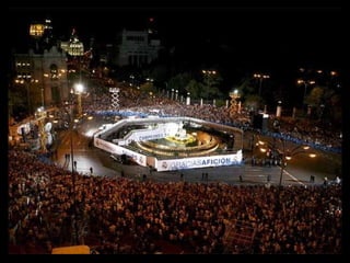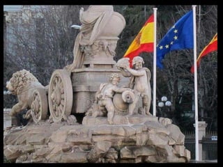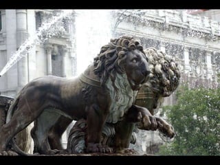 La fuente de Cibeles representa a la diosa romana Cibeles. Fue diseñada por Ventura Rodríguez en el siglo XVIII y se ubicó originalmente junto al Palacio de Buenavista, mirando a la fuente de Neptuno. En 1895 fue trasladada al centro de la Plaza de Cibeles. El Real Madrid celebra sus títulos en la fuente, colocando una bufanda en la estatua de la diosa. La fuente es uno de los principales símbolos de la ciudad de Madrid.