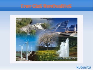 Este documento resume las principales fuentes de energía renovables y no renovables. Entre las energías renovables se encuentran la solar, eólica, hidráulica, mareomotriz, geotérmica y de biomasa. Las no renovables incluyen el carbón, petróleo, gas natural y energía nuclear, que provienen de fuentes fósiles que se están agotando.