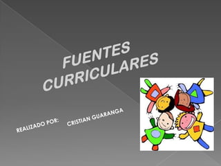 El documento describe cuatro fuentes de fundamentación para el diseño curricular: sociológica, epistemológica, psicológica y pedagógica. La fuente sociológica se refiere a adecuar el proyecto formativo a las necesidades y expectativas sociales. La fuente epistemológica considera las características de las disciplinas académicas en la selección de contenidos. La fuente psicológica toma en cuenta teorías del desarrollo y aprendizaje para objetivos, contenidos y metod