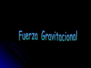 El documento presenta información sobre conceptos fundamentales relacionados con la fuerza gravitacional, incluyendo: 1) la fuerza gravitacional es la fuerza de atracción mutua entre objetos con masa; 2) la fuerza gravitacional en la Tierra causa el peso de los objetos; 3) las características de la fuerza incluyen magnitud, dirección, sentido y punto de aplicación; 4) la ley de la gravitación universal de Newton establece que la fuerza gravitacional es directamente proporcional a las masas de los objetos e inversamente proporcional al cuadrado