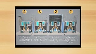 El documento detalla el desastre nuclear de Fukushima Daiichi, provocando la evacuación de miles de personas tras un terremoto y tsunami en 2011. Describe los antecedentes y características de la planta, así como la propagación de contaminación radiactiva y sus efectos en la salud, incluyendo un estudio de la prevalencia de cáncer de tiroides en la población expuesta. Se destacan las limitaciones del estudio y la necesidad de seguimiento en las áreas afectadas.