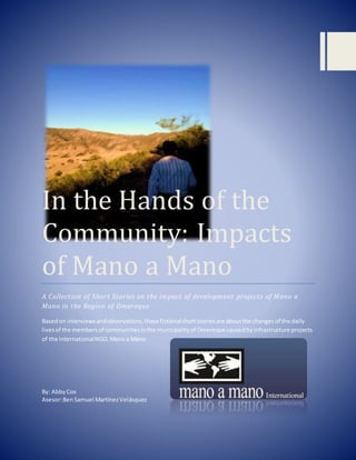 Este documento presenta cuatro cuentos ficticios basados en proyectos reales de desarrollo rural de Mano a Mano en la región de Omereque, Bolivia. Los cuentos examinan cómo proyectos de atajados, escuelas, centros de salud y un puente han mejorado las vidas diarias de los miembros de las comunidades de Huanacuni Grande, Omereque, Kayarani y Chari Chari al proveer acceso a recursos agrícolas, educación, salud y transporte. A través de estas historias,