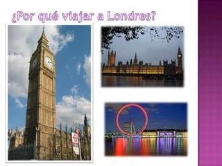 El documento habla sobre la etimología incierta del nombre de Londres y las diferentes teorías sobre su origen. También menciona que la distancia entre Londres y Buenos Aires es de 11,087 km y que la ciudad de Londres se viste de gala en diciembre para las festividades navideñas, aunque las tarifas hoteleras pueden ser ligeramente más altas debido al aumento del turismo. Finalmente, ofrece servicios de hospitalidad y guías turísticos gratuitos en Londres para garantizar la comodidad y felicidad de