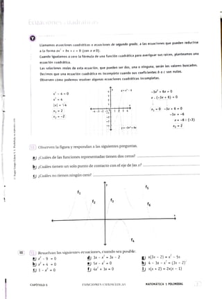 El documento explica brevemente las funciones cuadráticas, indicando que su expresión general es f(x) = ax2 + bx + c, con a ≠ 0. Menciona que al representarlas gráficamente se obtiene una parábola, la cual presenta un eje de simetría y un vértice donde cambia de ser creciente a decreciente. Además, las raíces de la función son las abscisas de los puntos donde la parábola corta el eje x.